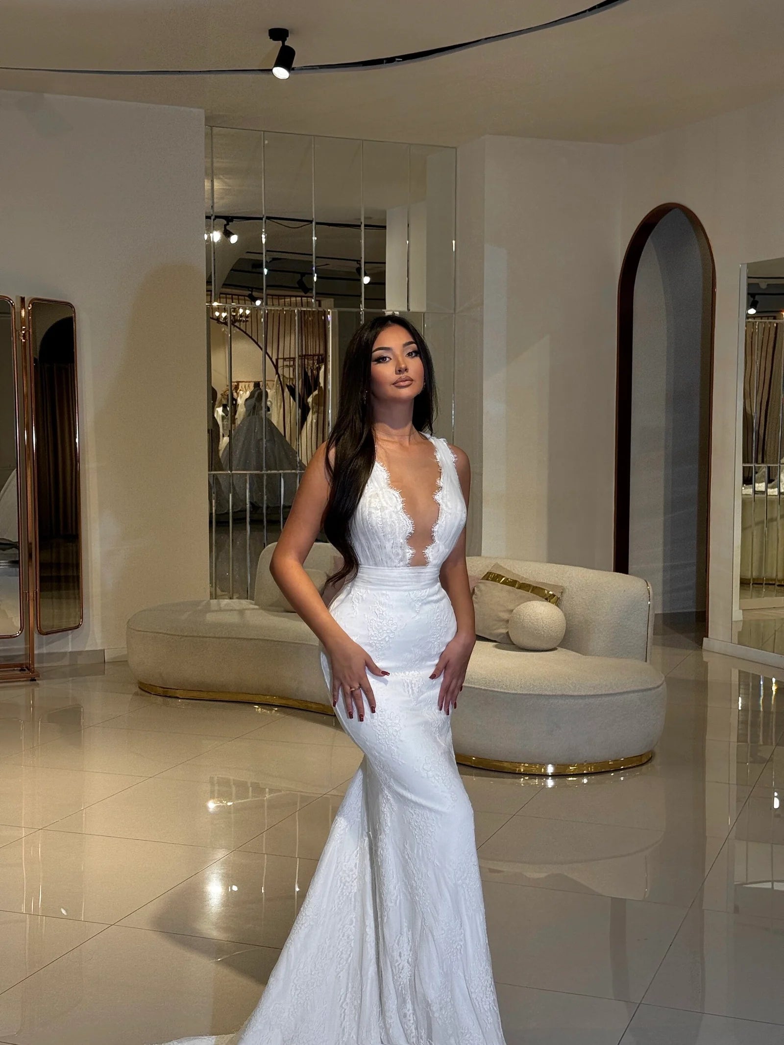The Elvane bridal floral dress is a must-have for any bride-to-be. Made with delicate floral detailing, this dress exudes elegance and grace. The flowing silhouette and intricate craftsmanship make it the perfect choice for a romantic and timeless look on your special day.