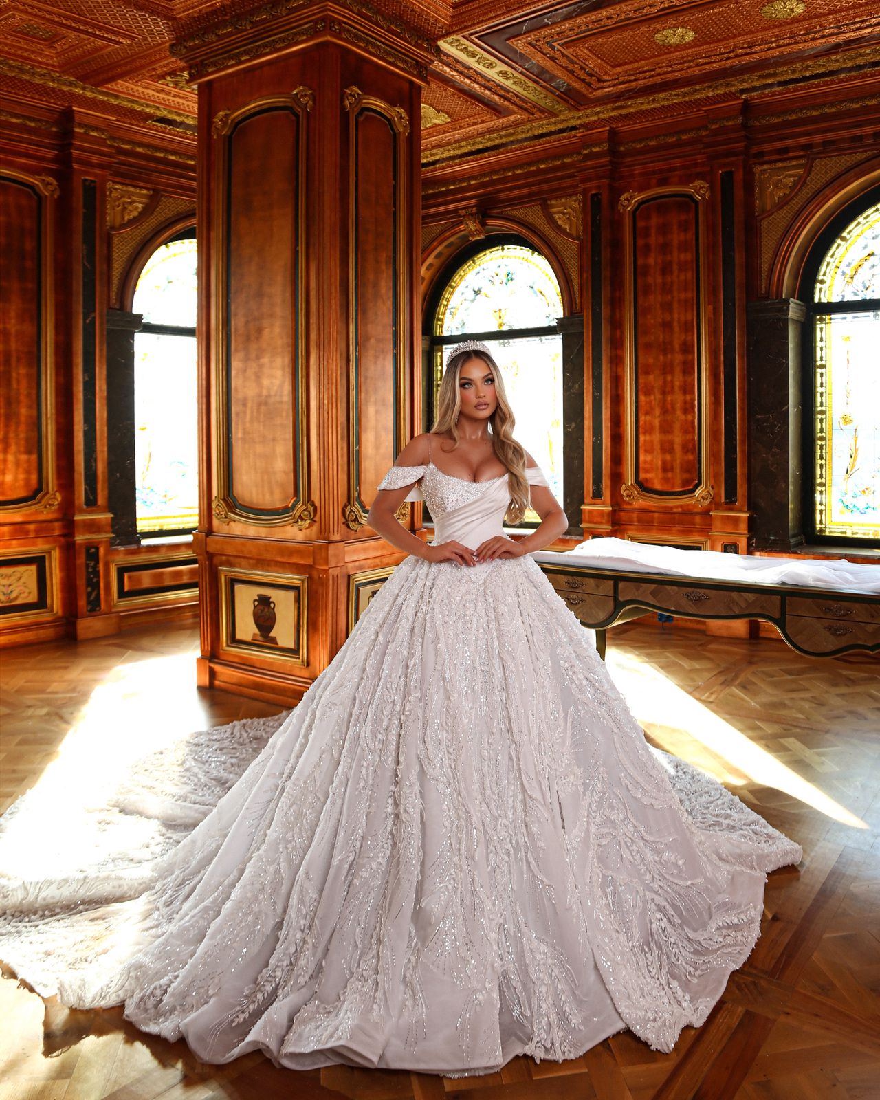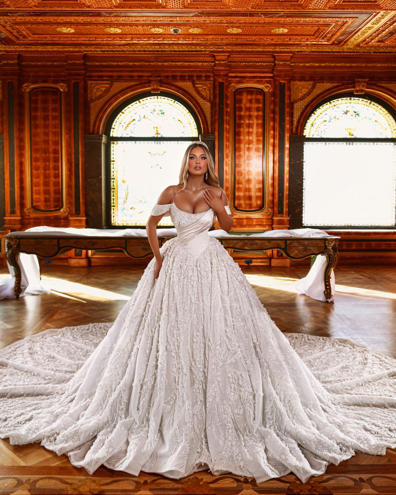 Expertly crafted with aether design, this handmade wedding gown is a one-of-a-kind piece of haute couture. Every detail has been meticulously hand decorated, resulting in a stunning new design that exudes elegance. Elevate your special day with Nymphea.
