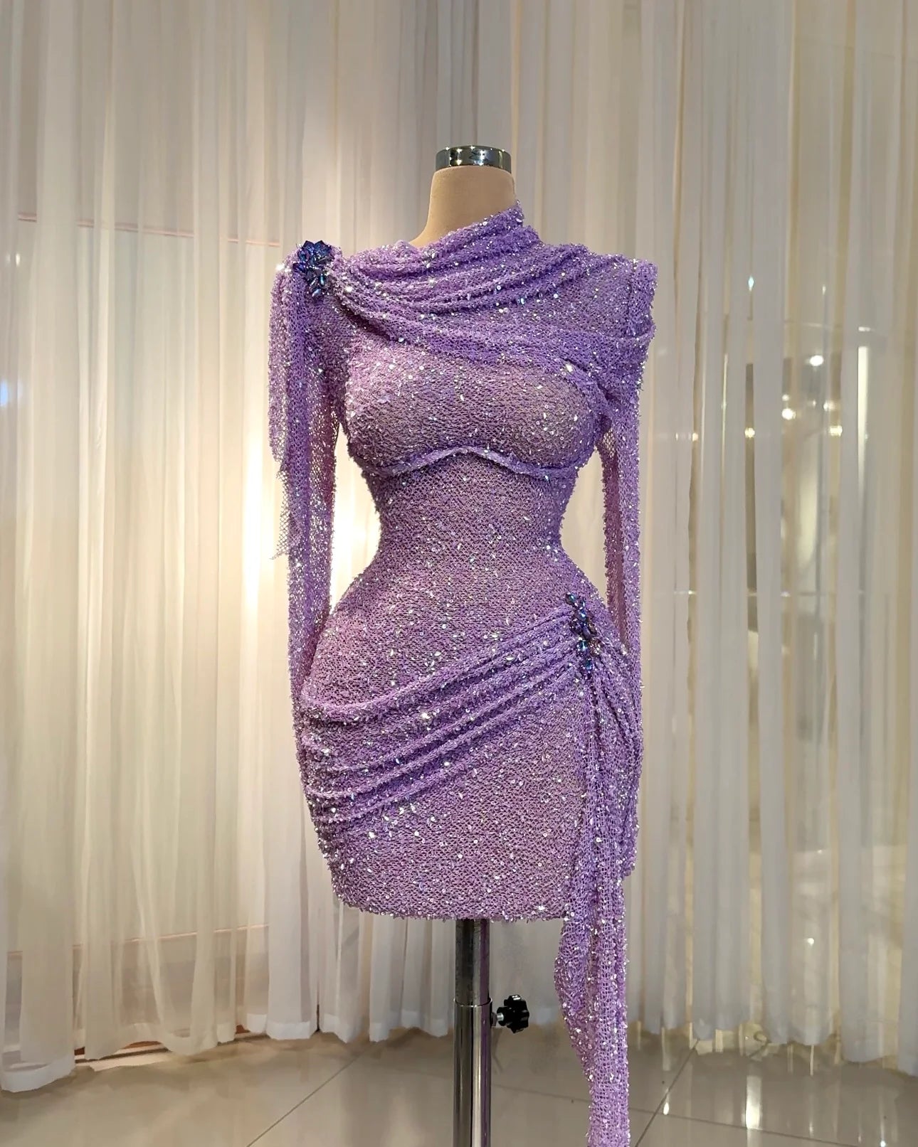 A dreamy and sophisticated lavender purple hue, embellished with reflective sequins that add a radiant and luxurious sparkle.