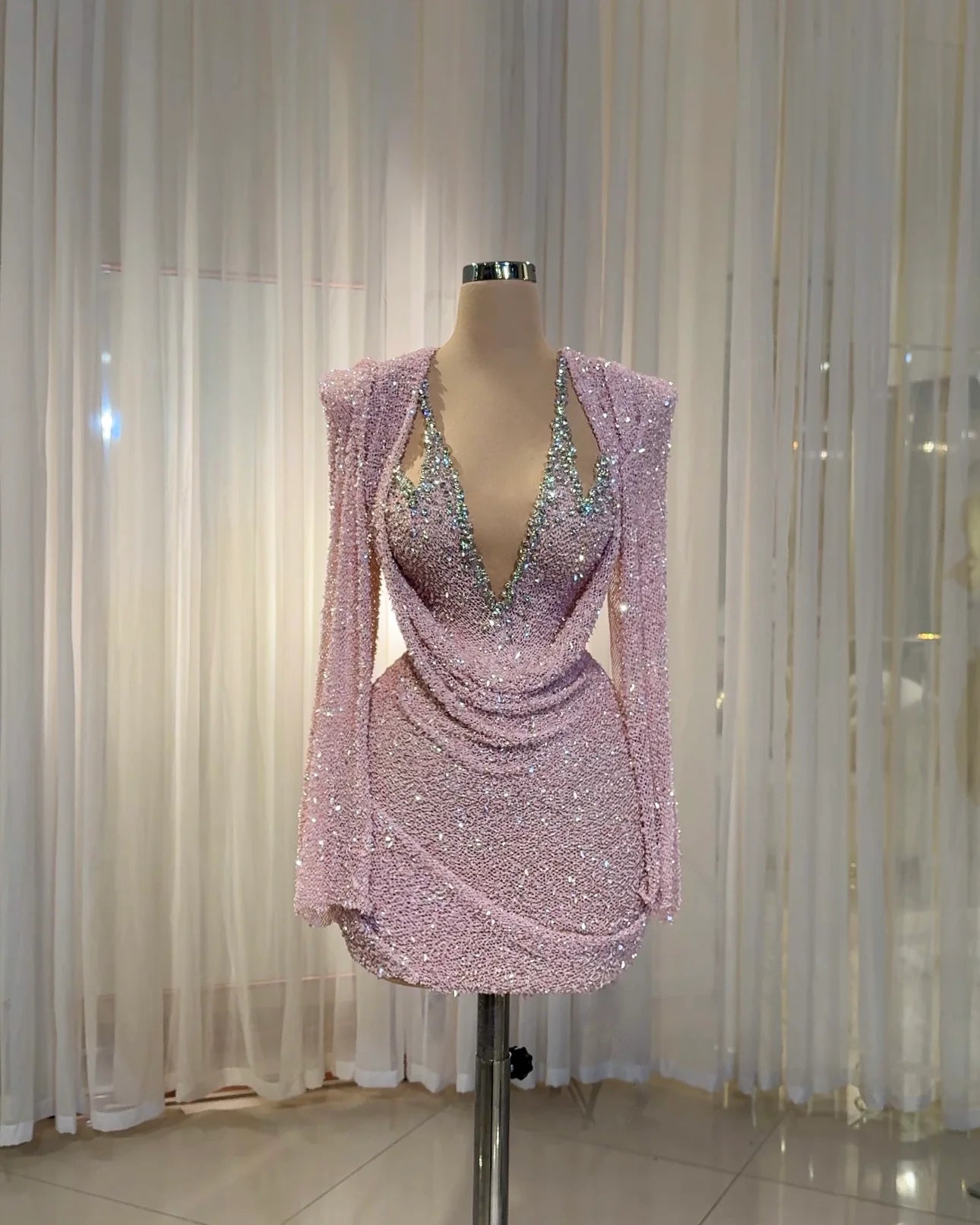 A delicate, pastel pink adorned with shimmering sequins or crystal embellishments that add a radiant sparkle, perfect for catching the light.