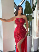 The Oaklyn Grace dress is fully covered in shimmer, giving it a sparkling and eye-catching look. ✨