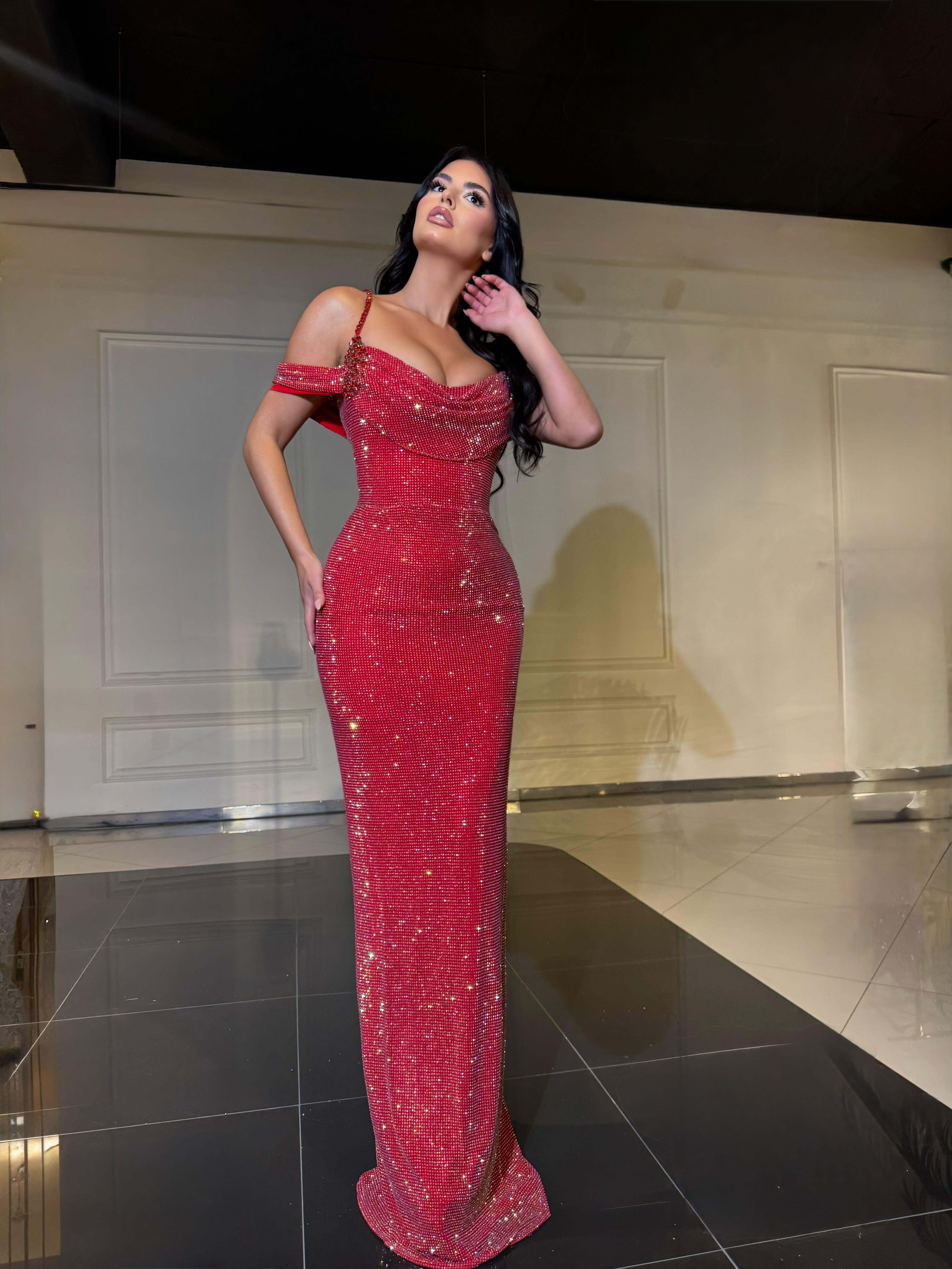 Elegant red dress with clean lines and a defined silhouette. The bold color conveys confidence, while the refined design makes it suitable for formal events and special evenings.
