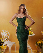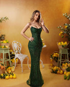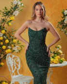 This dress features an architectural, sweetheart neckline that flows into a structured bodice, entirely adorned with intricate, hand-placed beadwork and shimmering embellishments in a geometric mosaic pattern. Cascading into a floor-length finish, the premium fabric offers a slight stretch for a seamless fit, making it an extraordinary choice for high-end galas, red carpets, or exclusive evening events.